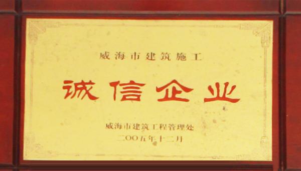 公司連續(xù)八年榮獲威海市“誠信開發(fā)企業(yè)”、“建筑施工誠信企業(yè)”,連續(xù)九年被評(píng)為威海市級(jí)“守合同重信用企業(yè)”,多次被評(píng)為威海市“市級(jí)文明單位”、“質(zhì)量管理先進(jìn)企業(yè)”、 “安全管理先進(jìn)企業(yè)”,乳山市“優(yōu)秀企業(yè)”、“先進(jìn)民營企業(yè)”、“納稅明星企業(yè)”,在社會(huì)上逐步樹立了誠信、穩(wěn)健的企業(yè)形象。